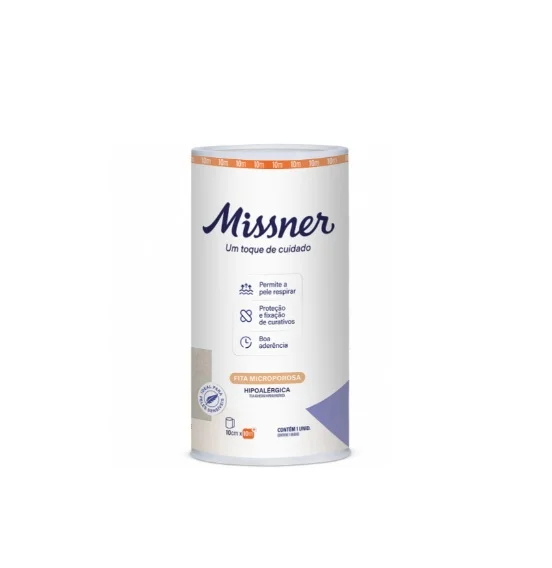 A Fita Microporosa Bege Missner permite a respiração da pele devido sua porosidade, evitando assim a maceração da mesma. Oferece mais liberdade de movimentos por ser extra fina, além de possuir excelente fixação. A Fita Microporosa Bege Missner é composta por um tecido não tecido à base de fibras viscosas com adesivo acrílico hipoalergênico.