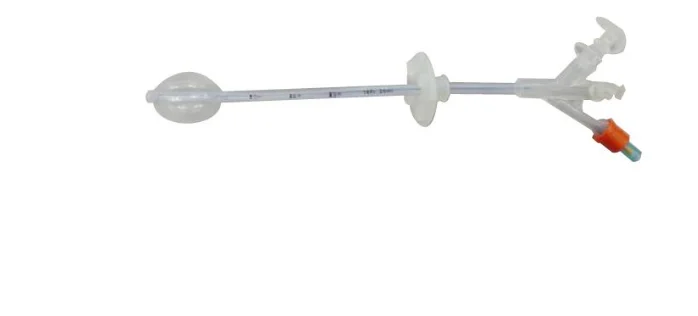 Três vias: 1 via para administração da dieta, 1 via para medicamentos e 1 via para preenchimento do balão; Balão 10-20ml